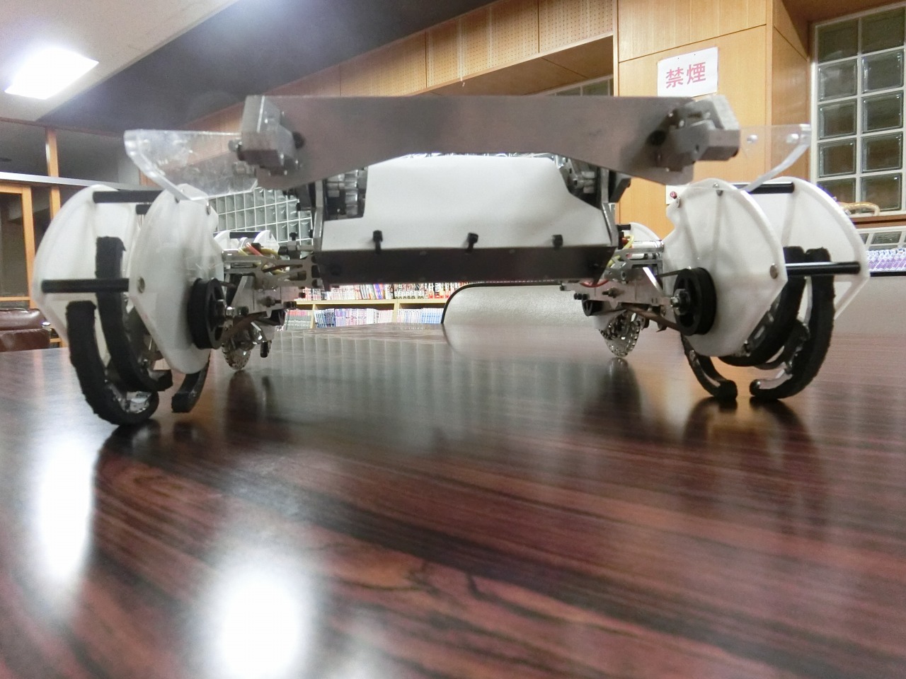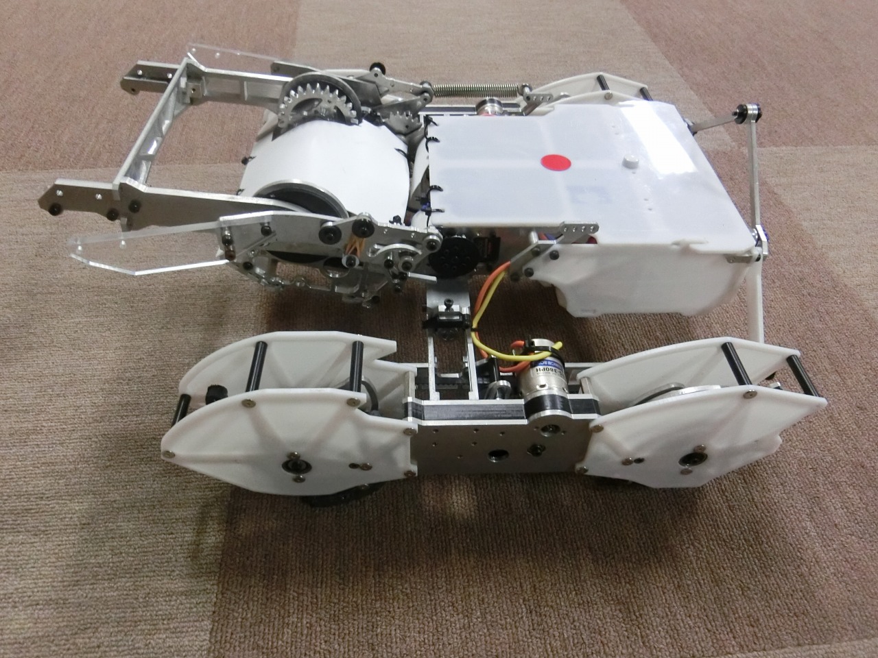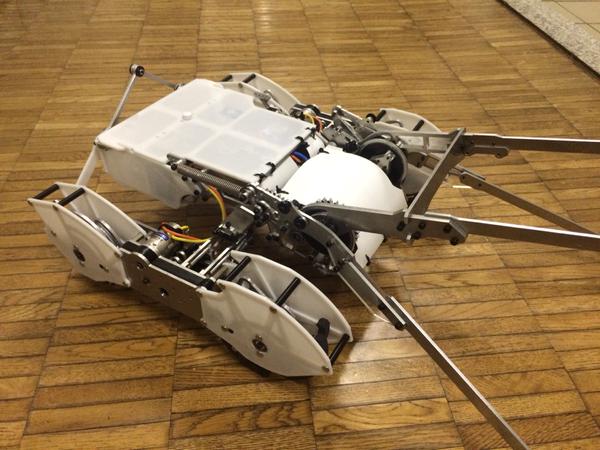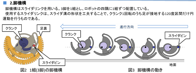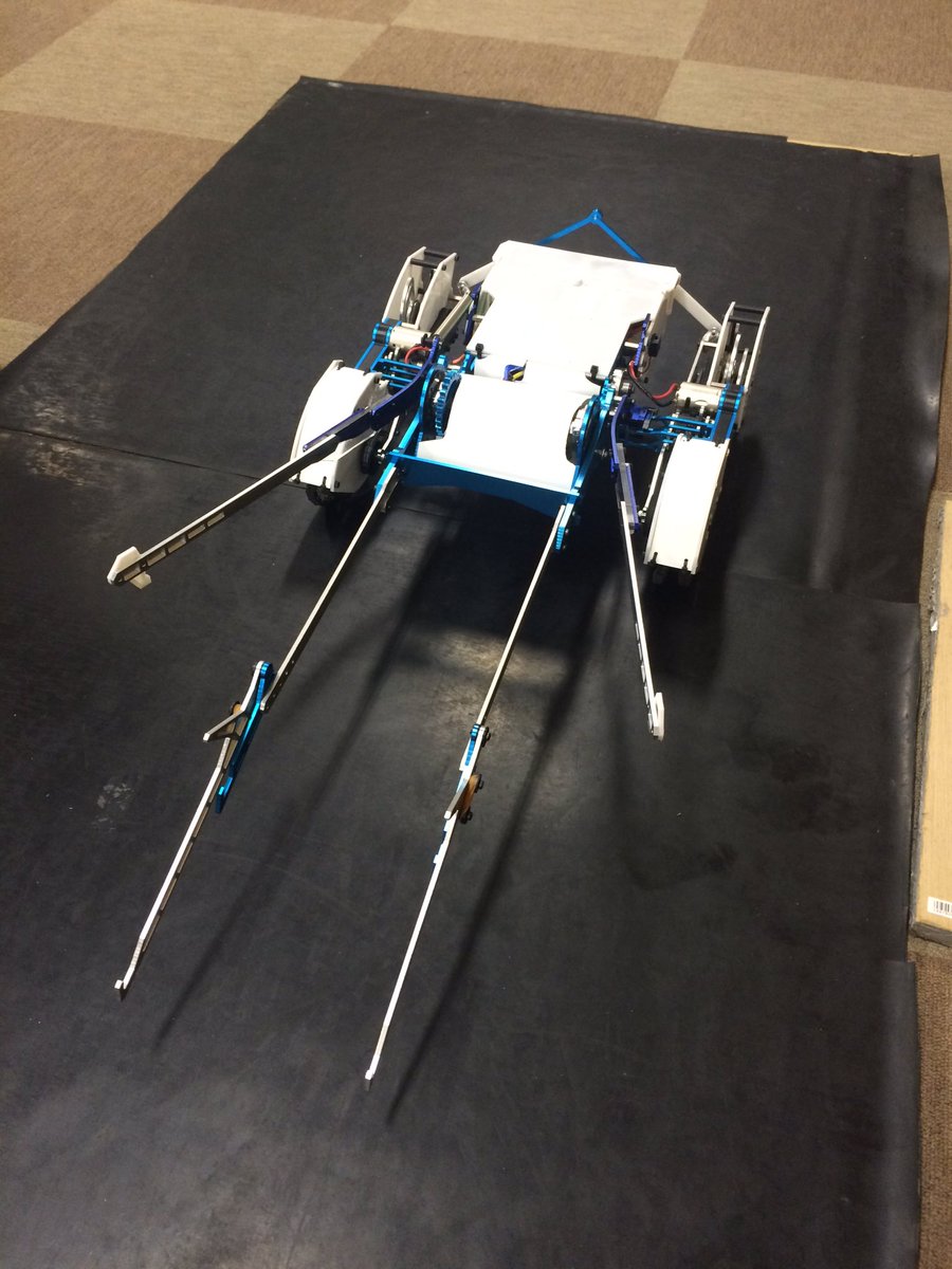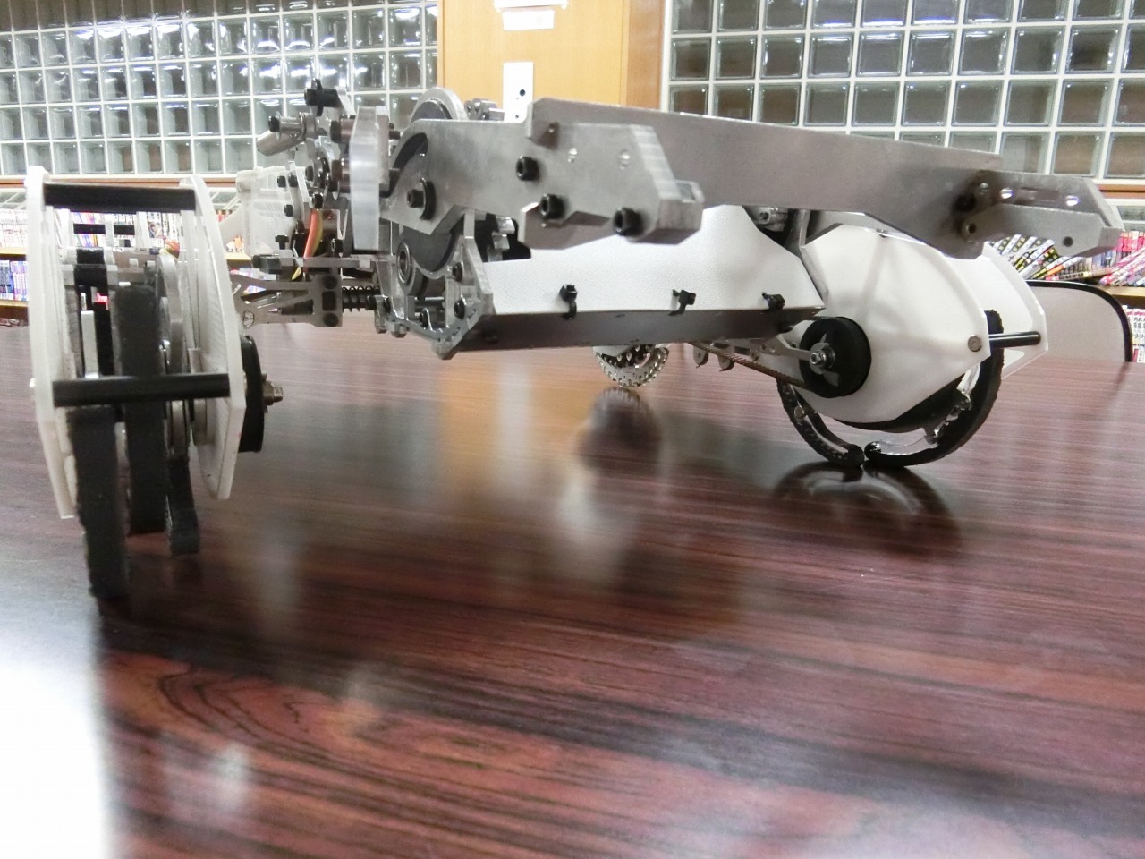 この構造のメリットは倒立スタートしないのでスタートが安定すること、丘を踏んでも常に4脚が接地することです。