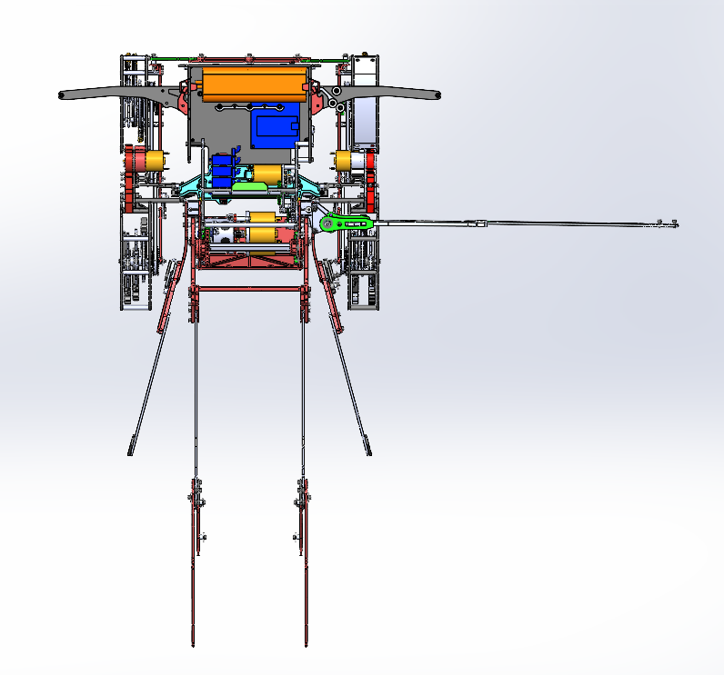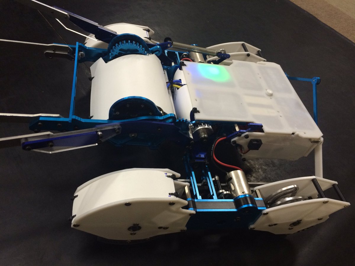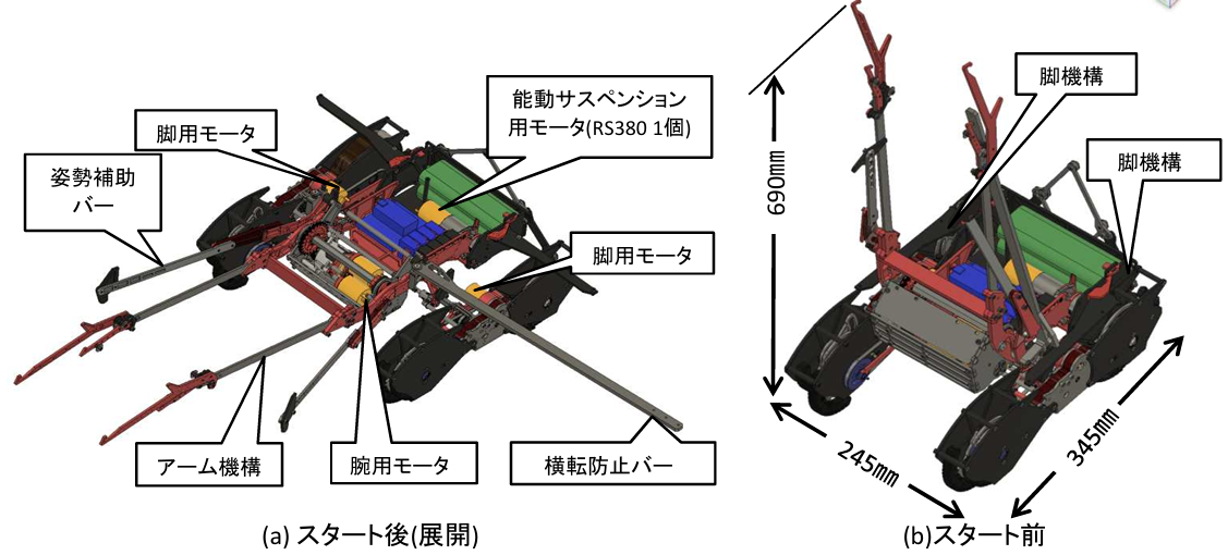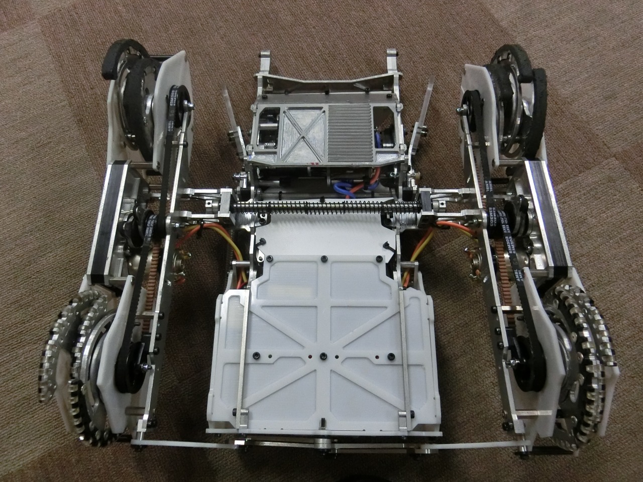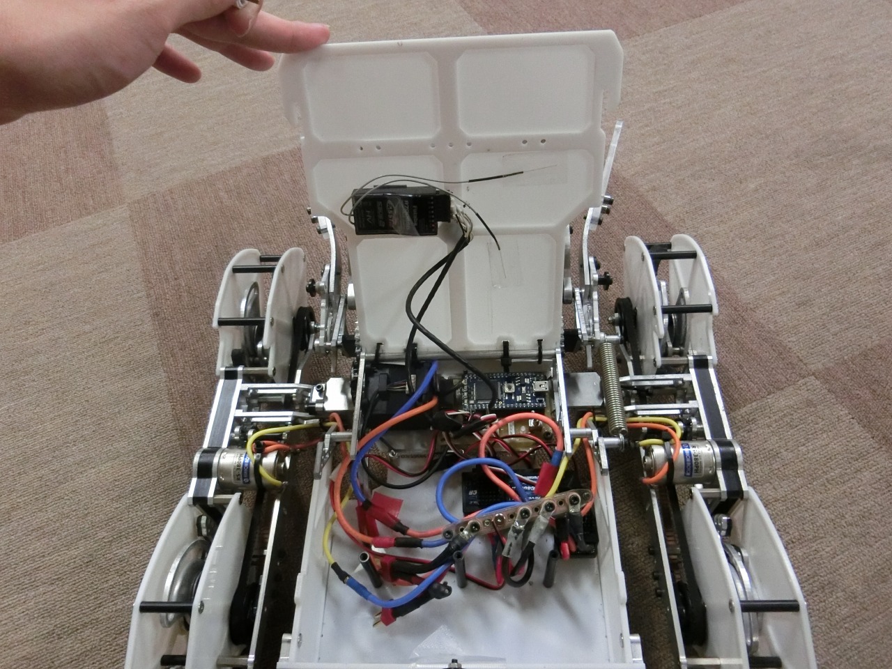 この構造のメリットは倒立スタートしないのでスタートが安定すること、丘を踏んでも常に4脚が接地することです。