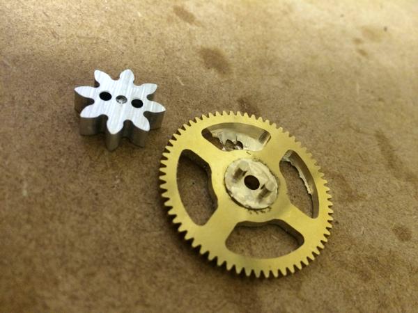 KUのピニオンをモータから外してシャフトに再圧入する必要があるため、圧入がちょっと緩め。今まで数年間壊れなかったもの先日ピニオンが滑って破損。