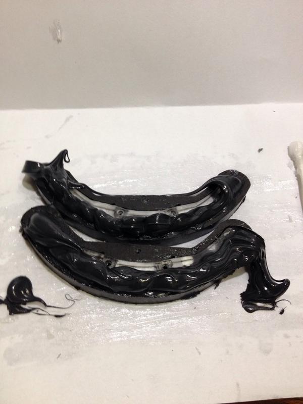 一時期シリコンシーラントが流行っていましたが、シリコンシーラントで足裏を作ると走行練習した家の床が滑りやすくなる(気がする)ため、より強度・摩擦係数の高いウレタンにしました。