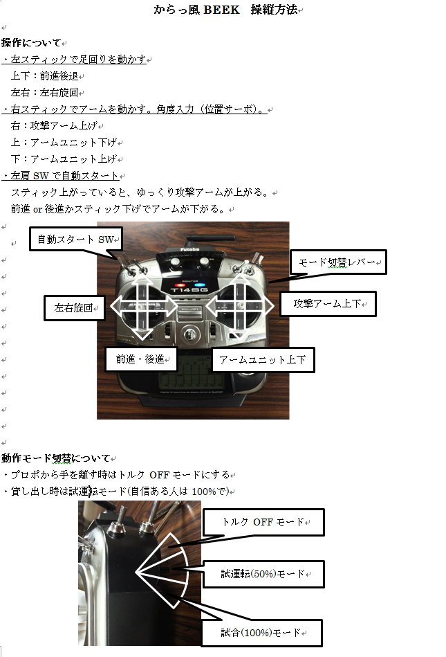 アームがリンク制限になってから似たような機体を作ってきましたが、やっと試合で壊れないものができてきました。