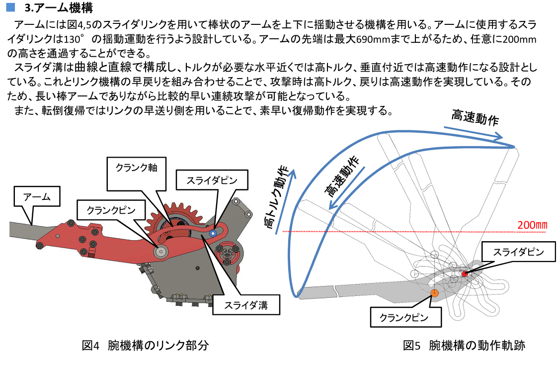 ・転倒復帰時にアームの可動範囲を補助(高減速型のスライダリンクなのであまり上がらない)