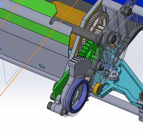 こんな感じの部品をナイロン焼結の3Dプリンタで作って、うち歯車をはめ込んでいます。