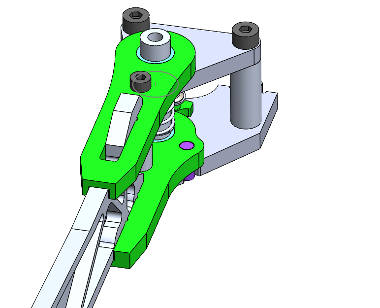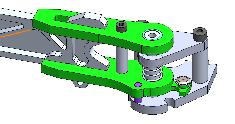 アームの展開機構は気に入っていて、指定の位置にアームが来るとバネの力でスライドし、ピンと溝が噛み合うようになっています。