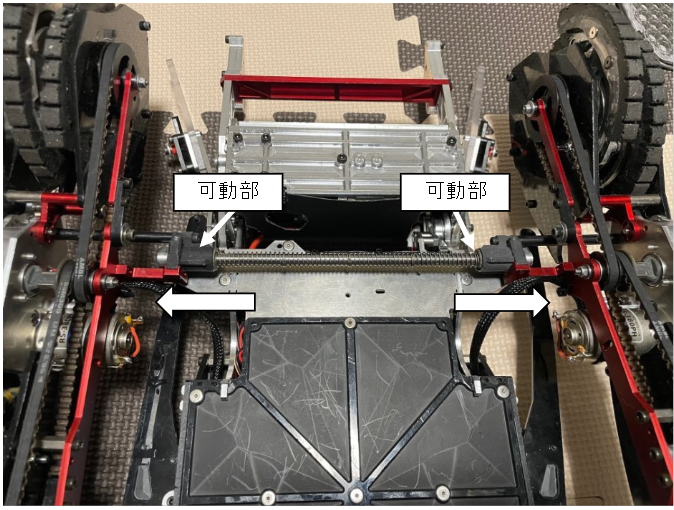 横幅を広げる機構と、リンク式サスペンションを一体化しています。