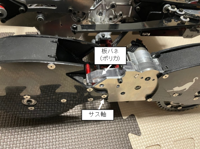 これを防ぐために、前足には簡単な板バネサスペンションを入れています。