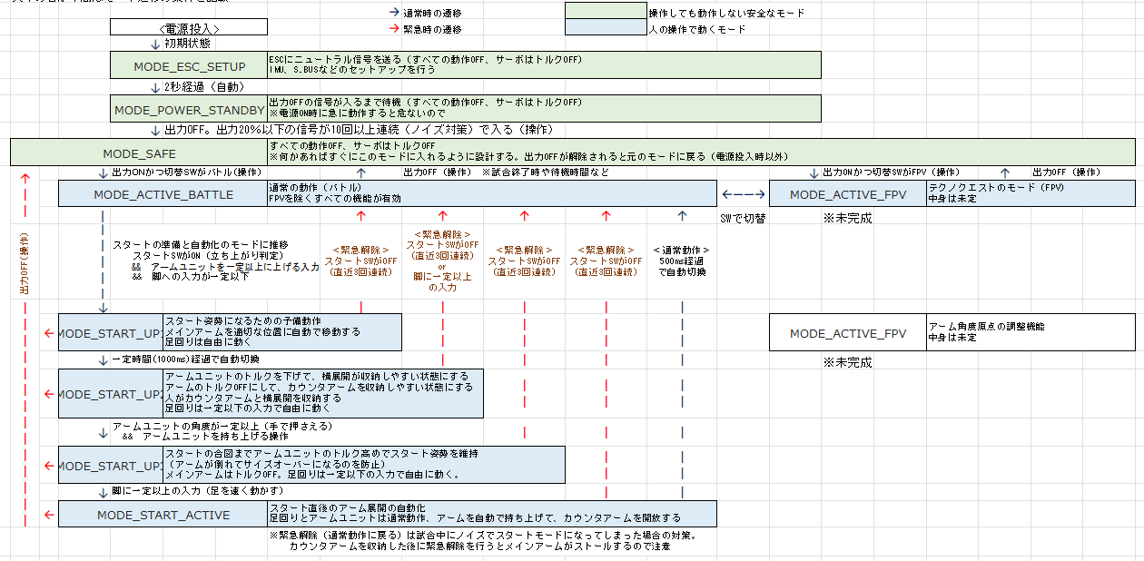 ただし、アームの操作レスポンスを優先するため、下記の場合でESCの出力を最大にしています。