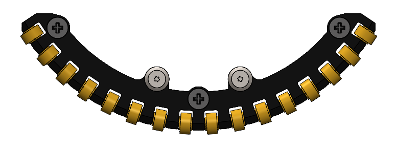 ベアカムはΦ2のピン3本で位置決め+中央のM3ねじで抜け止めとがたつき防止です。
