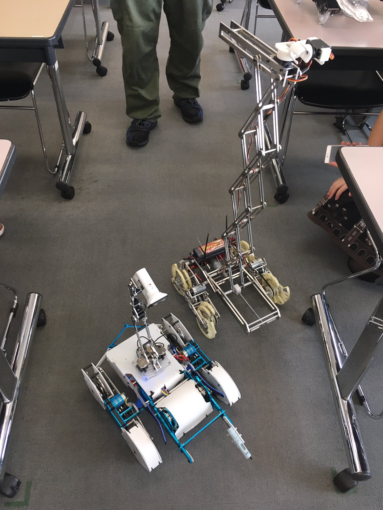 床にマス目があるので、フィールド上の距離感やロボットの自己位置はわかりやすくなっています。