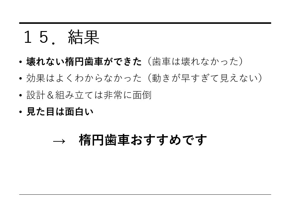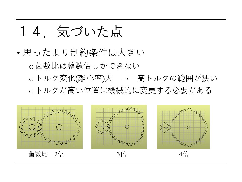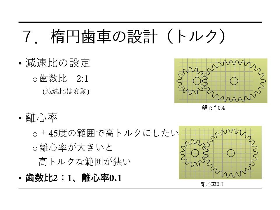 11月のロボコニストシンポジウムで楕円歯車について発表したので、