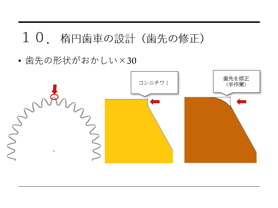 楕円歯車は歯の組み合わせが変わらないことが特徴なので、次やるときは
